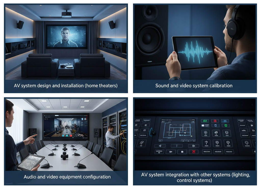 • AV system design and installation (home theaters, conference rooms, etc.)
